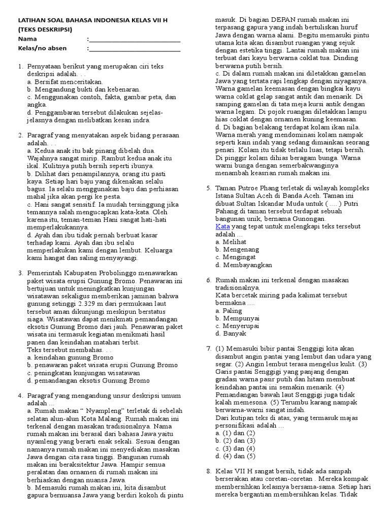 Soal Uraian Teks Deskripsi - Bank Soal Bab Teks Deskripsi : Maybe you would like to learn more about one of these?. Check spelling or type a new query. We did not find results for: Maybe you would like to learn more about one of these?